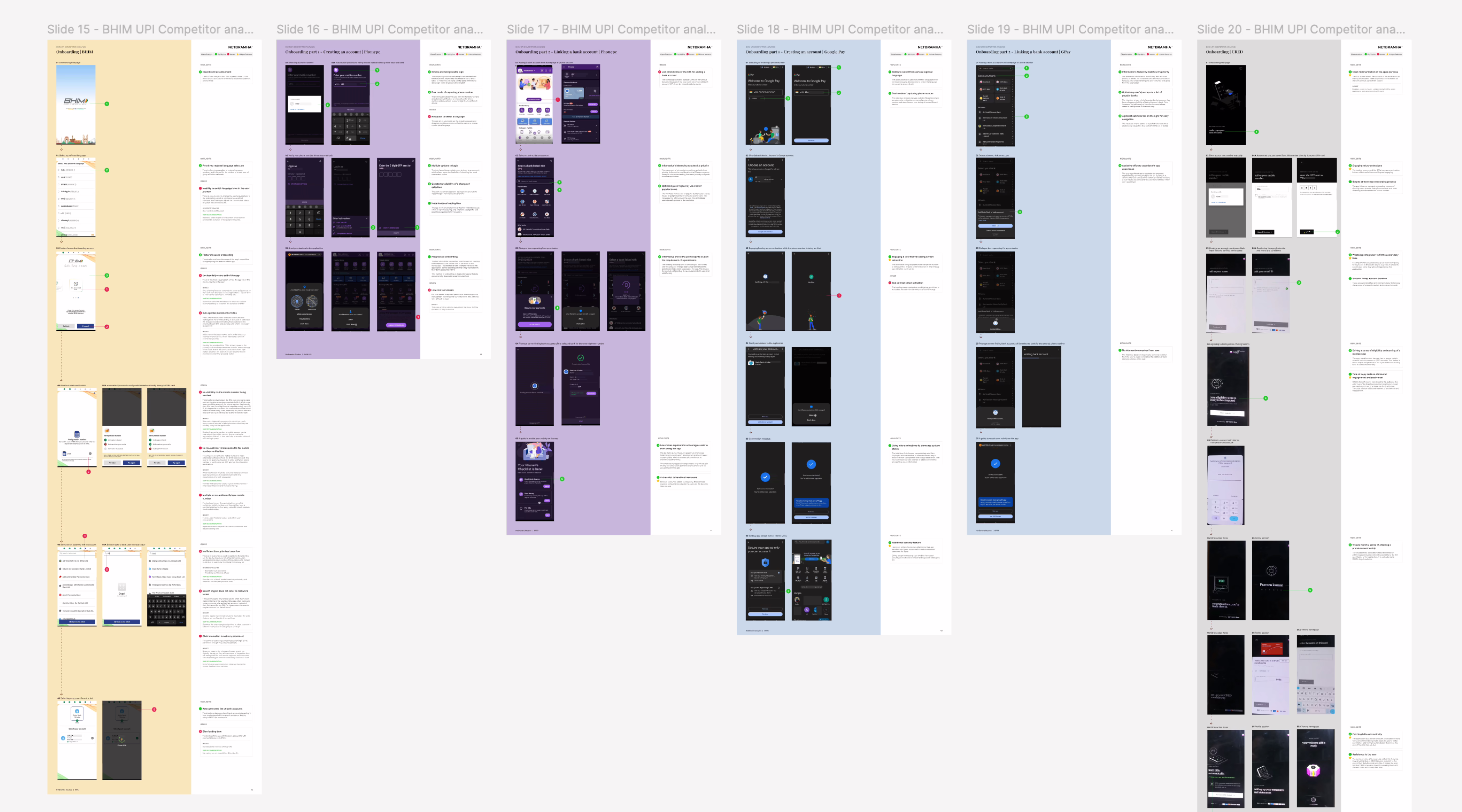 We conducted a detailed competitive analysis of other UPI players – Google Pay, PhonePe, Paytm & Cred – to understand how emotional design & micro-interactions influenced loyalty & engagement. These insights informed our roadmap to rebuild BHIM’s user experience around clarity, trust & inclusivity.