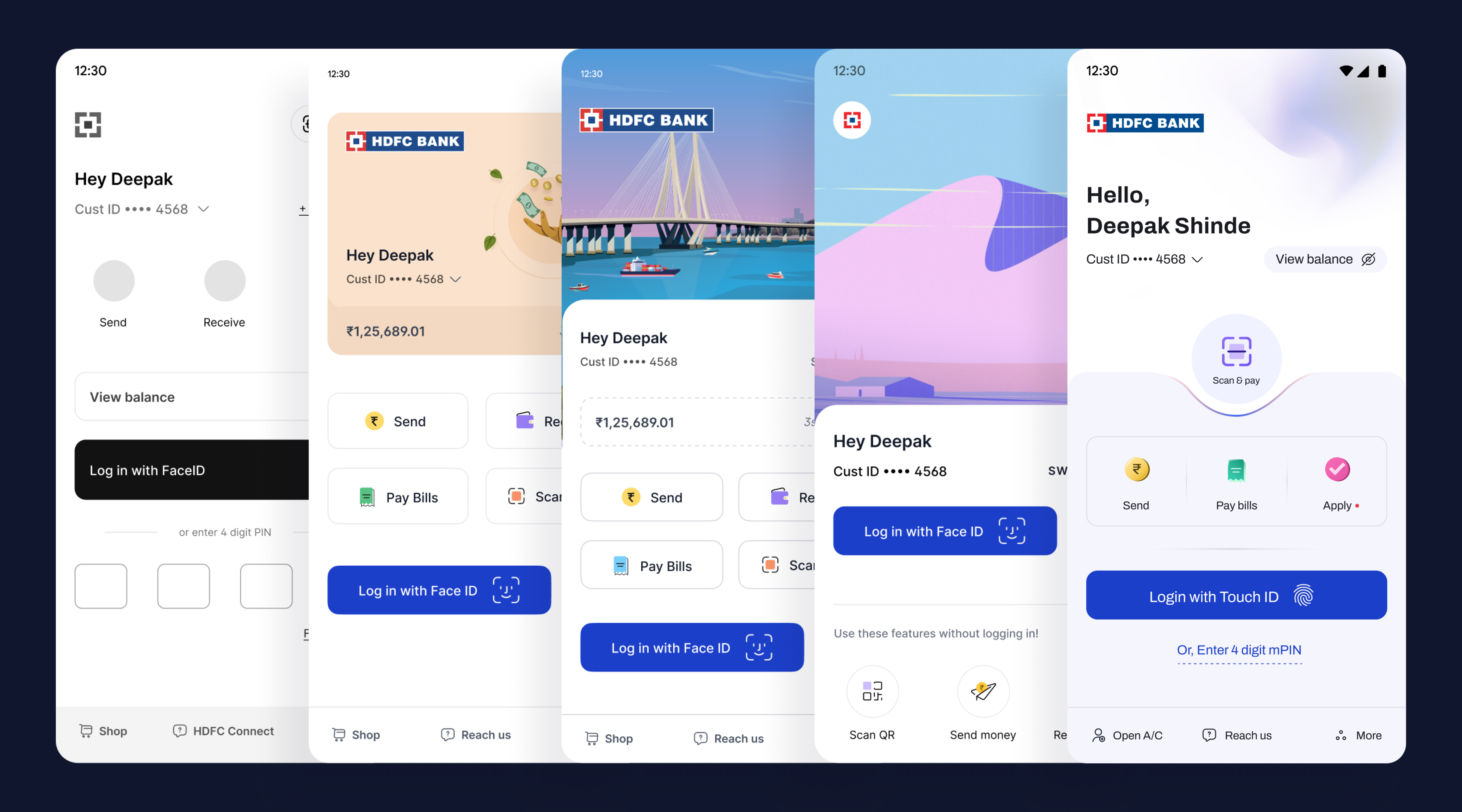 Building on the validated wireframes, our visual design phase brought HDFC Bank’s new digital identity to life – one that feels “modern, trustworthy & human”. We crafted a cohesive design language rooted in clarity & accessibility, balancing the bank’s legacy of reliability with the freshness of a neobank aesthetic.
