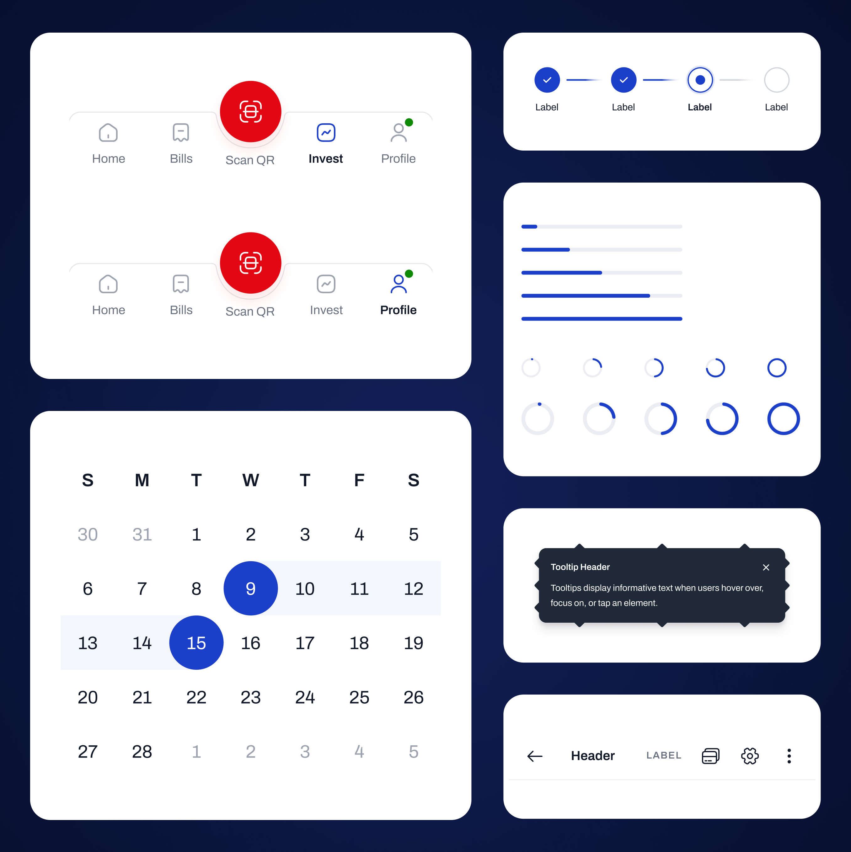 With components like tabs, date pickers, calendars, cards & alert patterns, the system acts as a long-term framework that keeps the experience cohesive, accessible & easy to build upon as new features & flows are added.