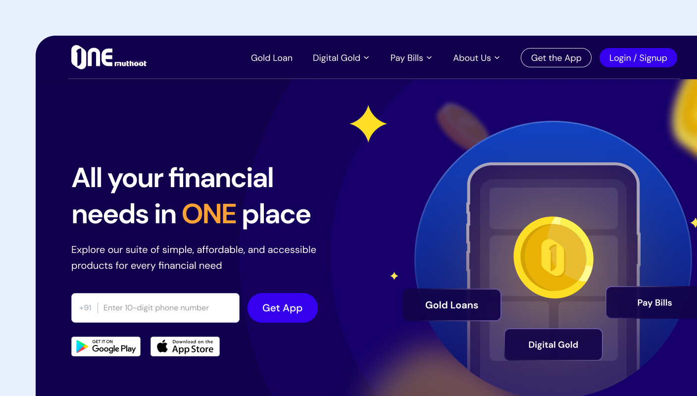 Muthoot FinCorp ONE is a financial institution that offers a wide range of financial services, including loans, investments, and insurance products. It is a subsidiary of Muthoot Pappachan Group, a well-known conglomerate in India. Our collaboration with ONE Muthoot aimed to transform the brand as a comprehensive financial ecosystem, offering convenient gold loan services from home, while maintaining high-quality standards. By modernizing financial services, ONE Muthoot sought to provide a secure, user-friendly experience and extend its services, broadening its digital finance footprint.