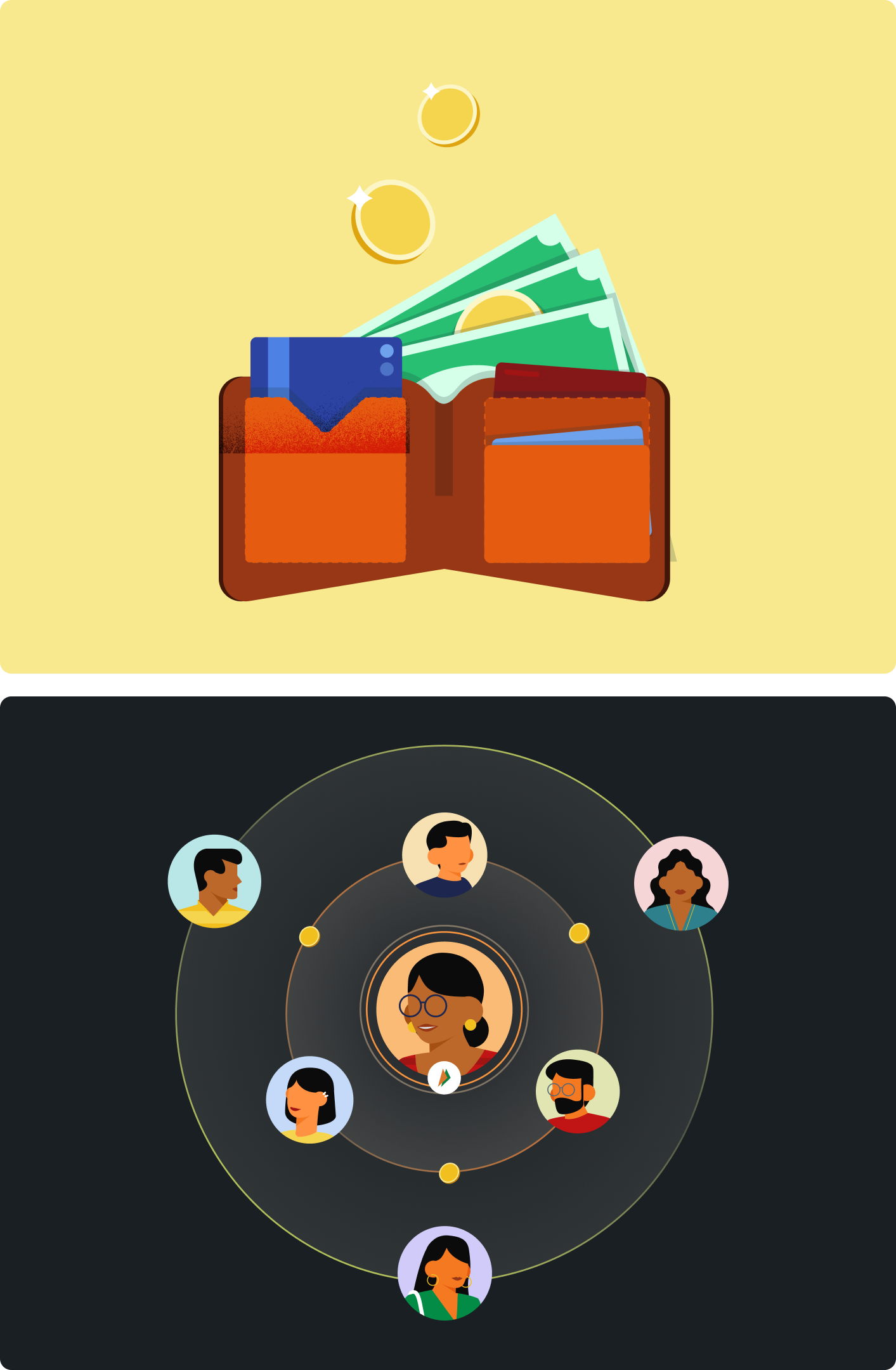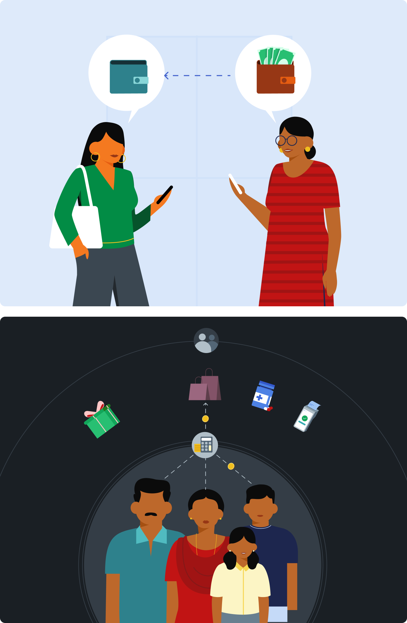 Semantic colours and illustrations established outcomes and nudged users to explore products and offers.