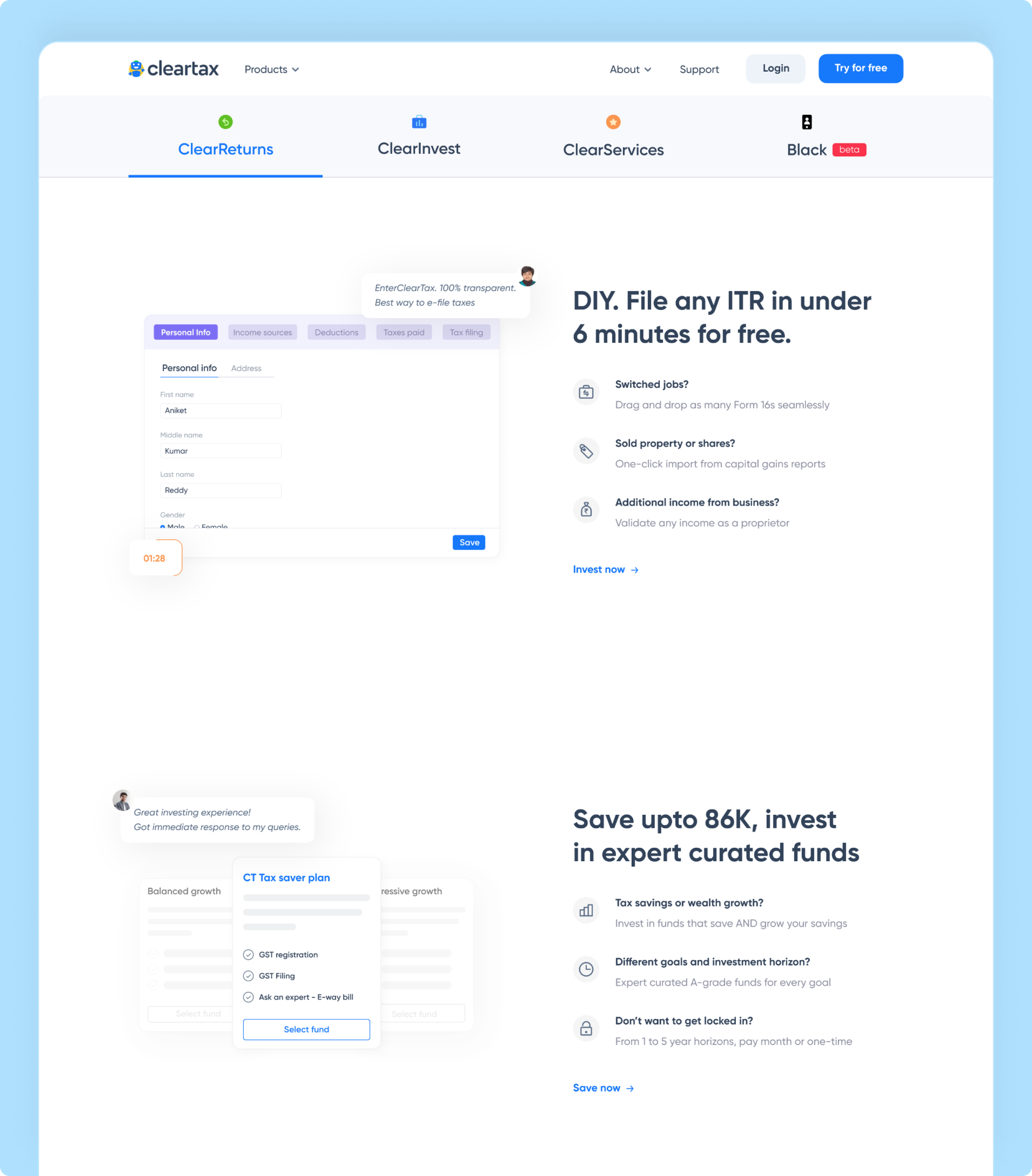 To design a unified, scalable product experience for ClearTax by improving usability, strengthening visual consistency, and simplifying tax-related workflows across the platform.