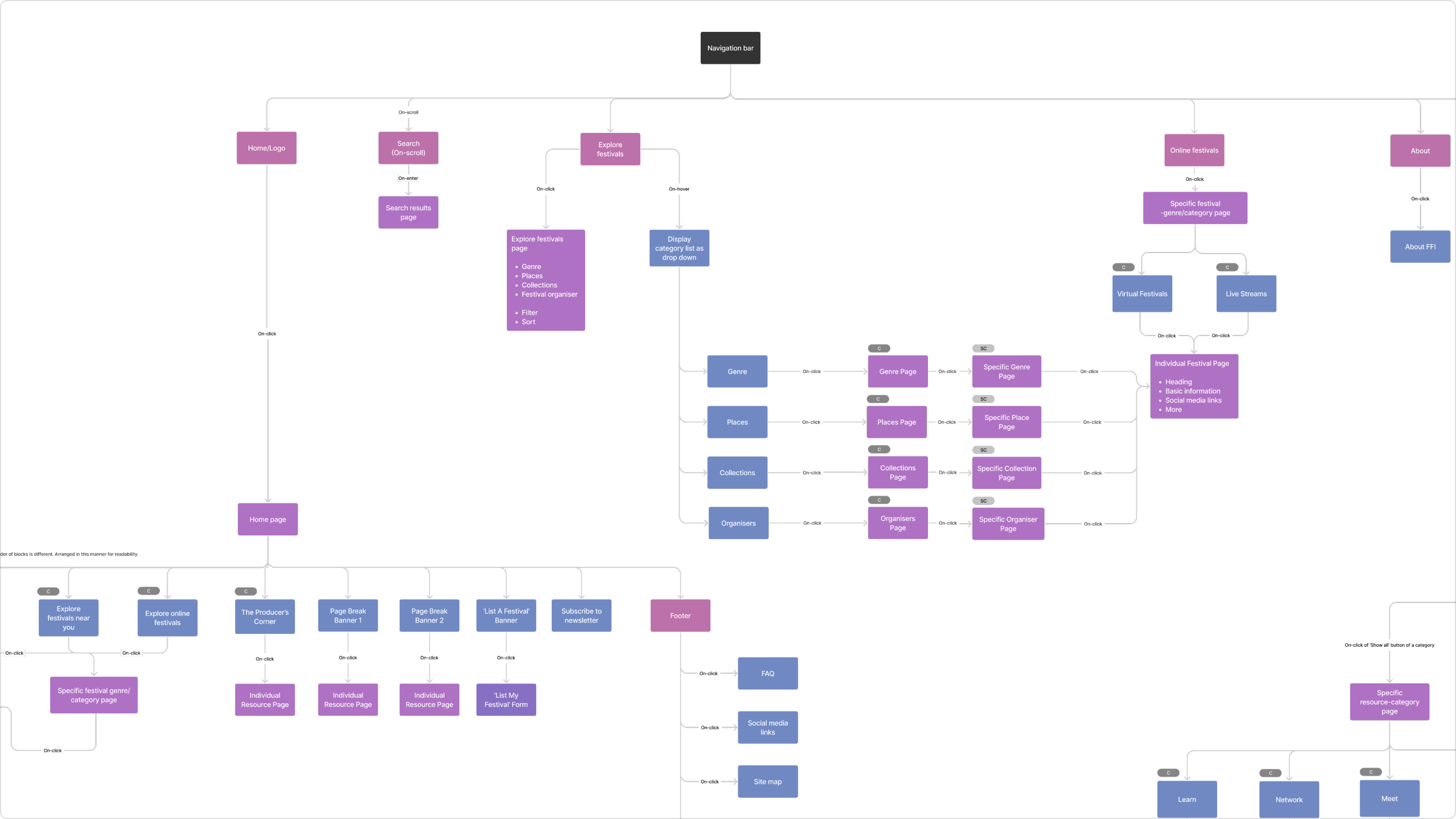 Defined the platform’s information architecture to structure navigation and content across festival resources.