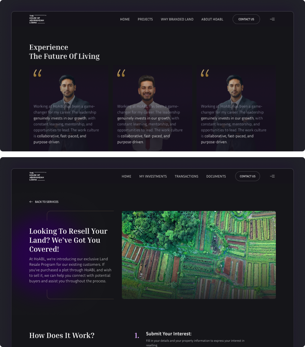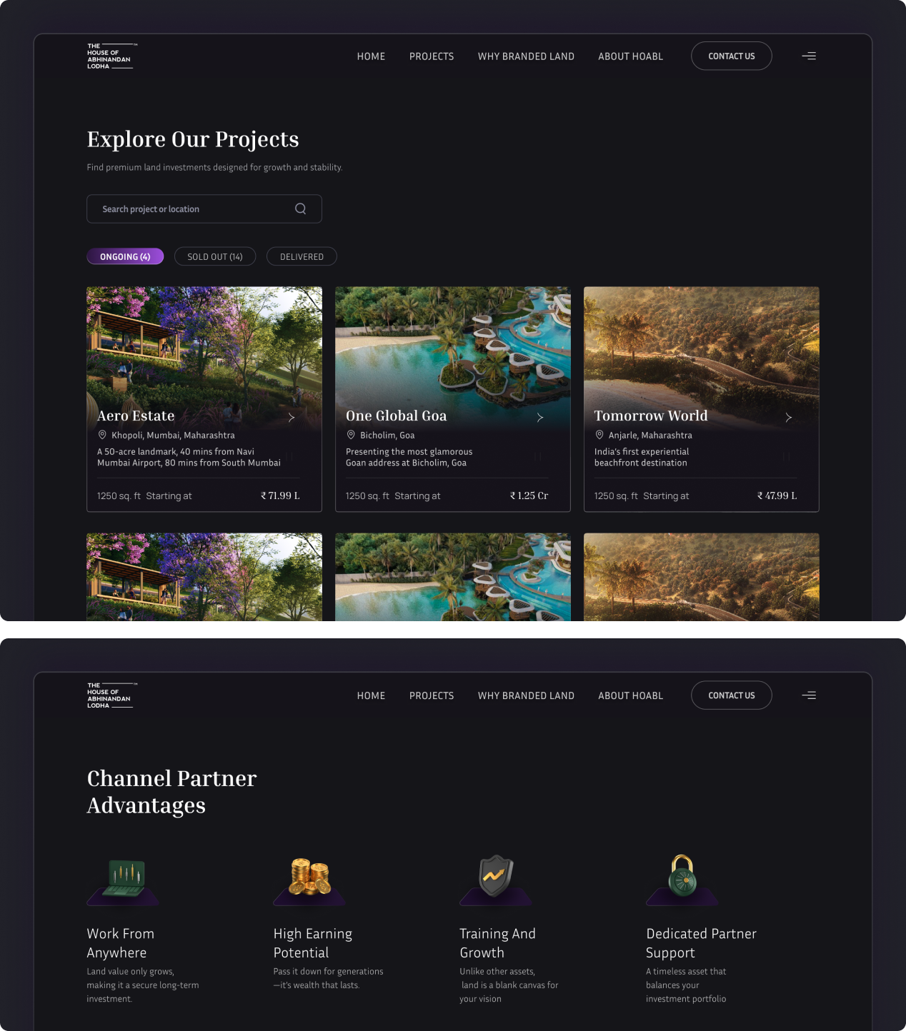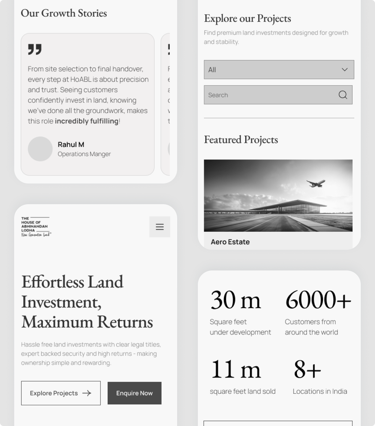 For HoABL – House of Abhinandan Lodha, the redesign used UX and visual design to increase engagement by 2.6× across key digital journeys.