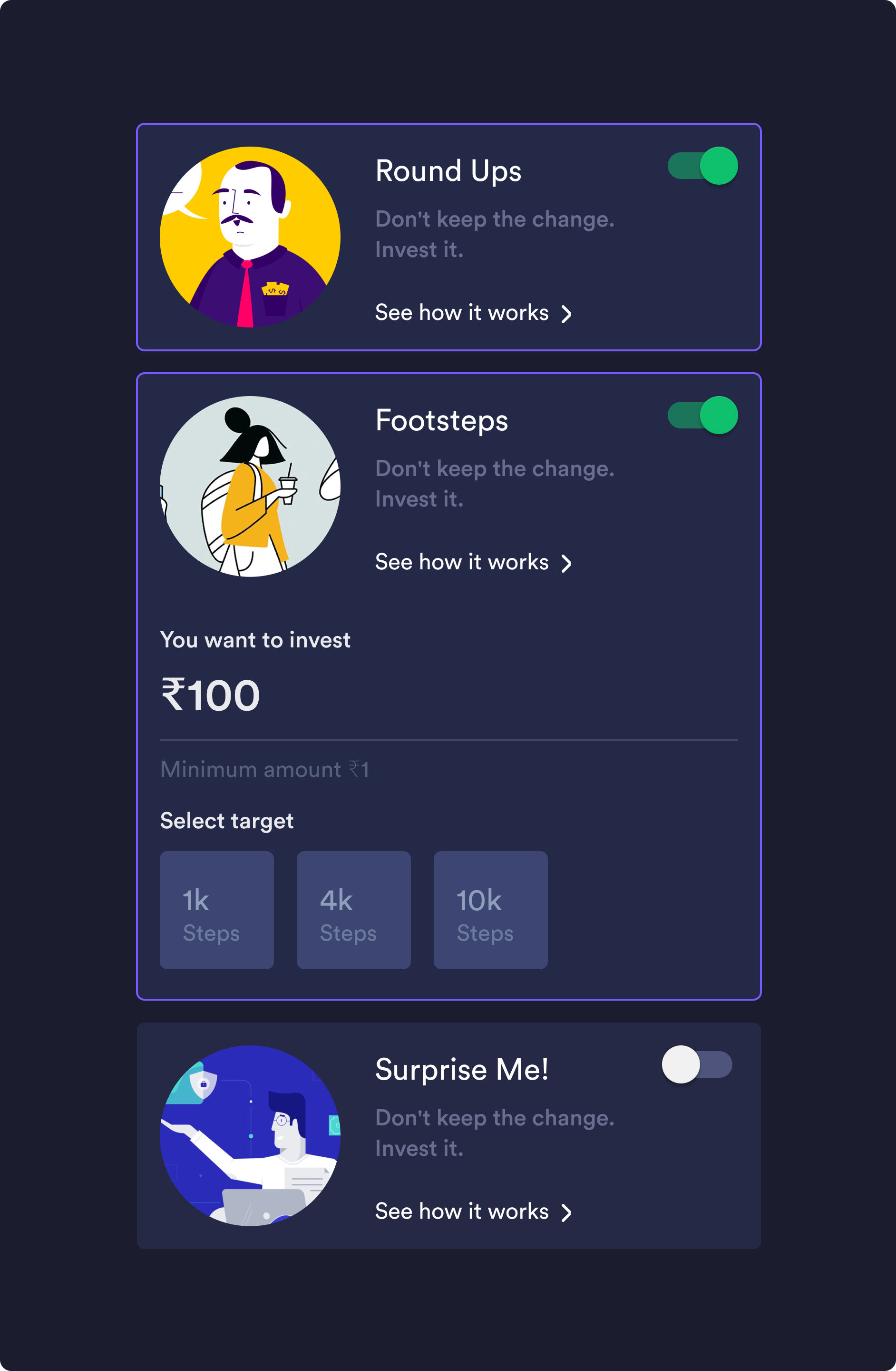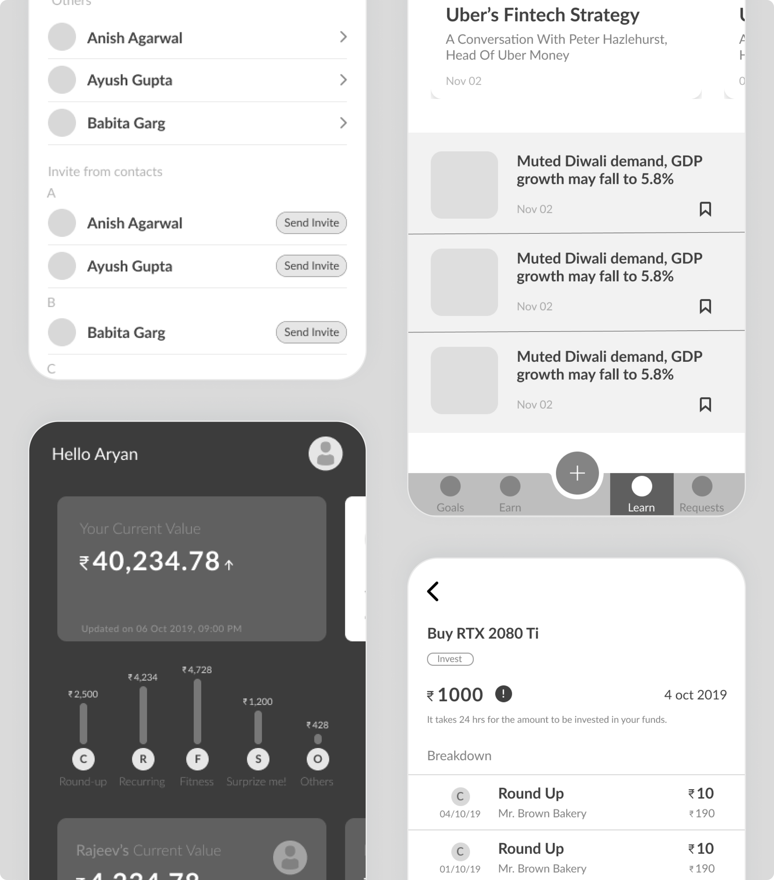Our mission was to design a mobile experience that simplifies micro-investments through intuitive flows, clear visual hierarchy, and an engaging goal-based interface.