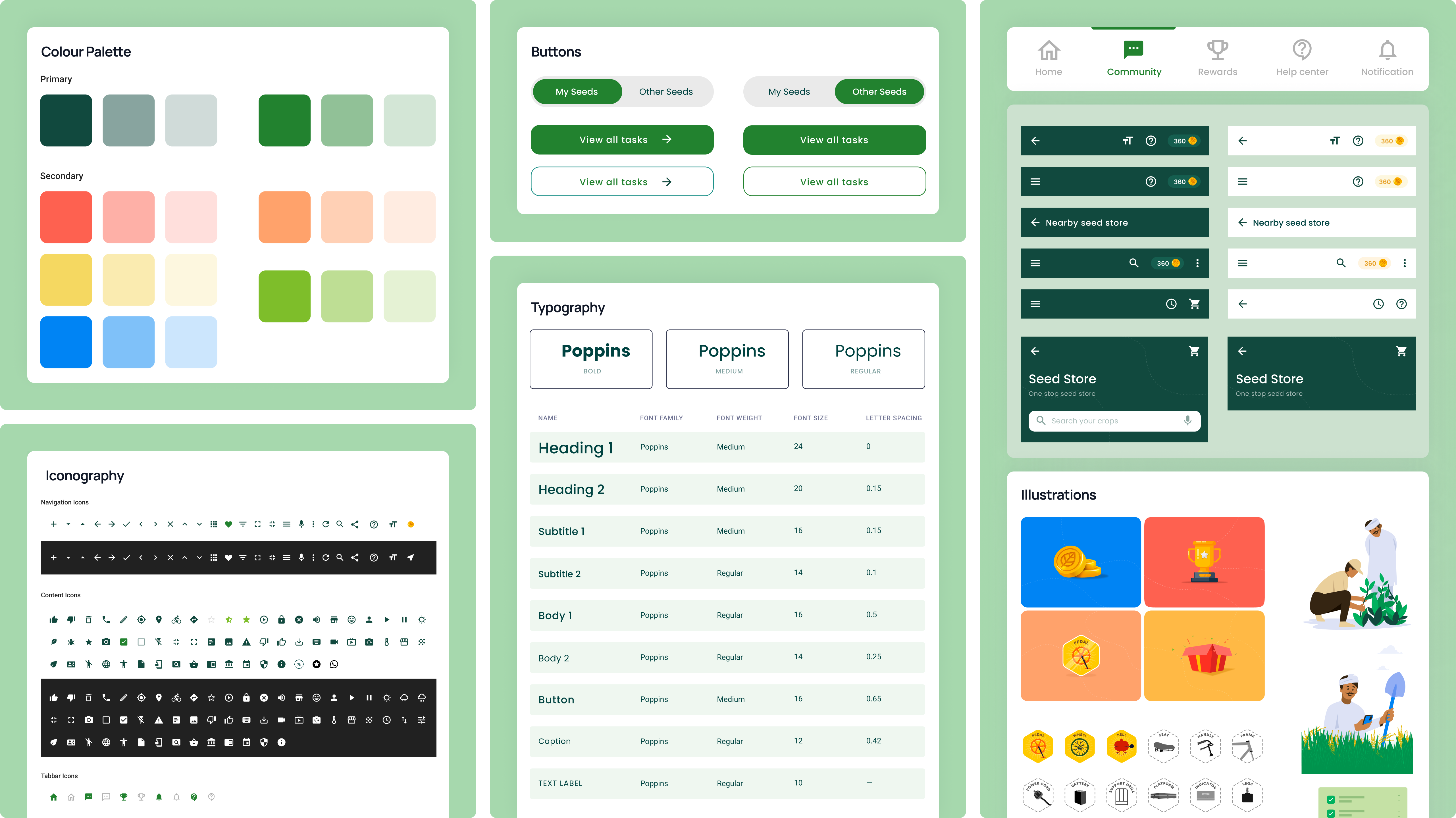 In order to increase reach & adoption, we ensured that we implemented strong & universally-accepted visual cues throughout the platform, with customized icons, illustrations, microanimations, & symbols placed strategically to ease the job of the farmers. A consistent design language, as per the above-mentioned design principles, including high contrast hues, color palette, & typography that spoke directly to the farmers formed the groundwork for SeedWork’s visual design.