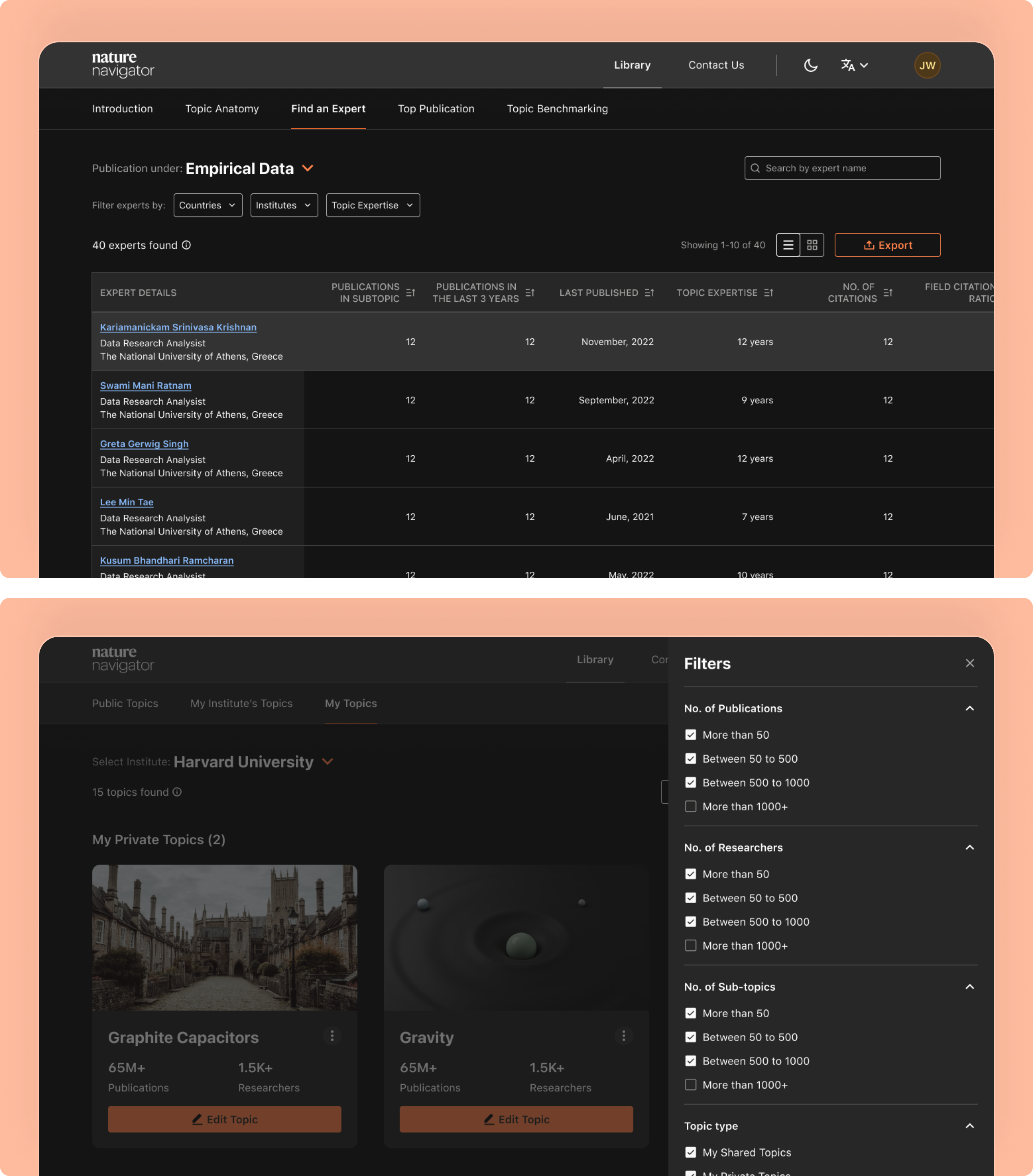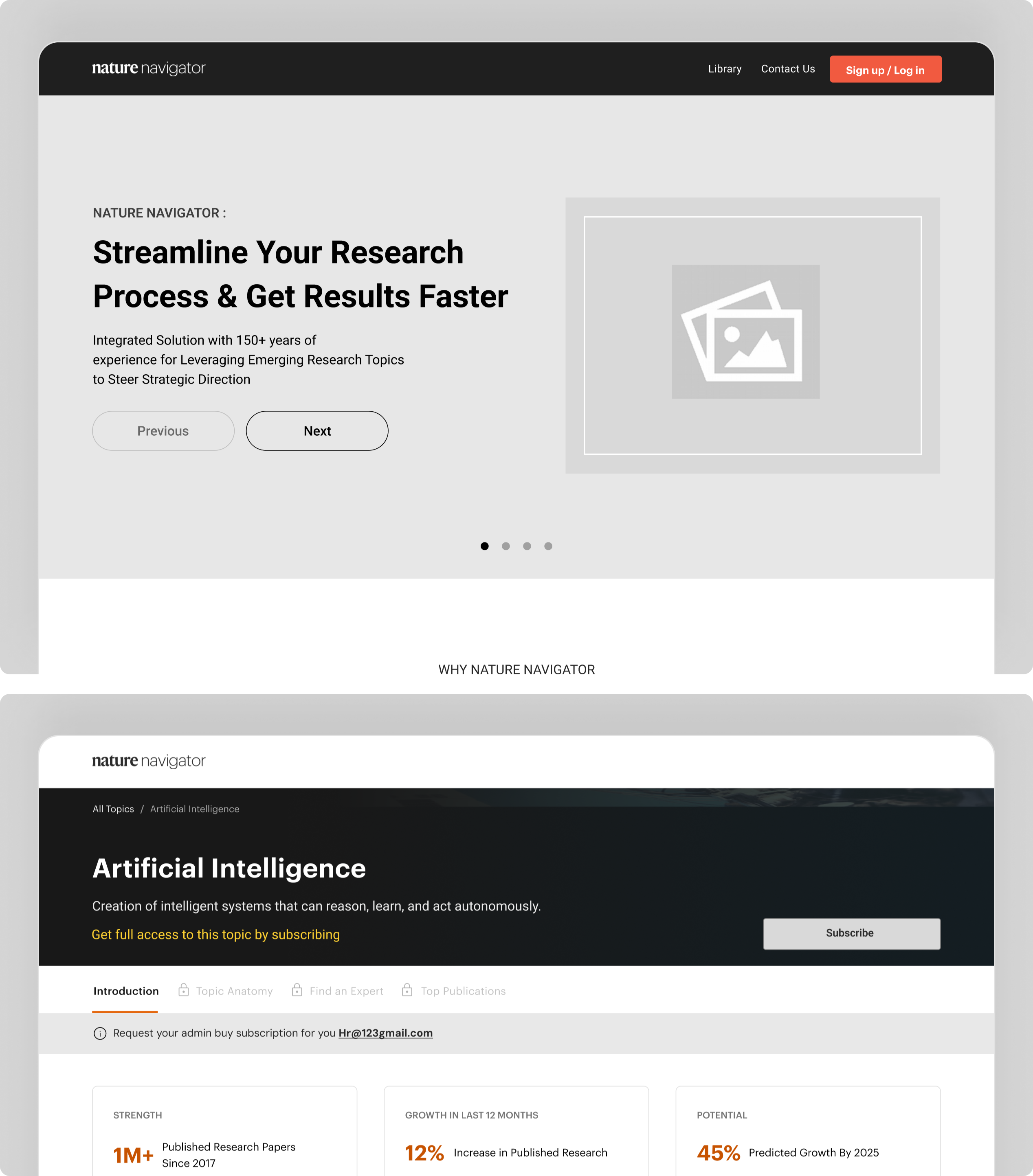 Our mission was to reimagine Nature Navigator as a streamlined research intelligence platform that simplifies exploration, improves discoverability of scientific knowledge, and enables researchers to uncover insights and collaboration opportunities faster.