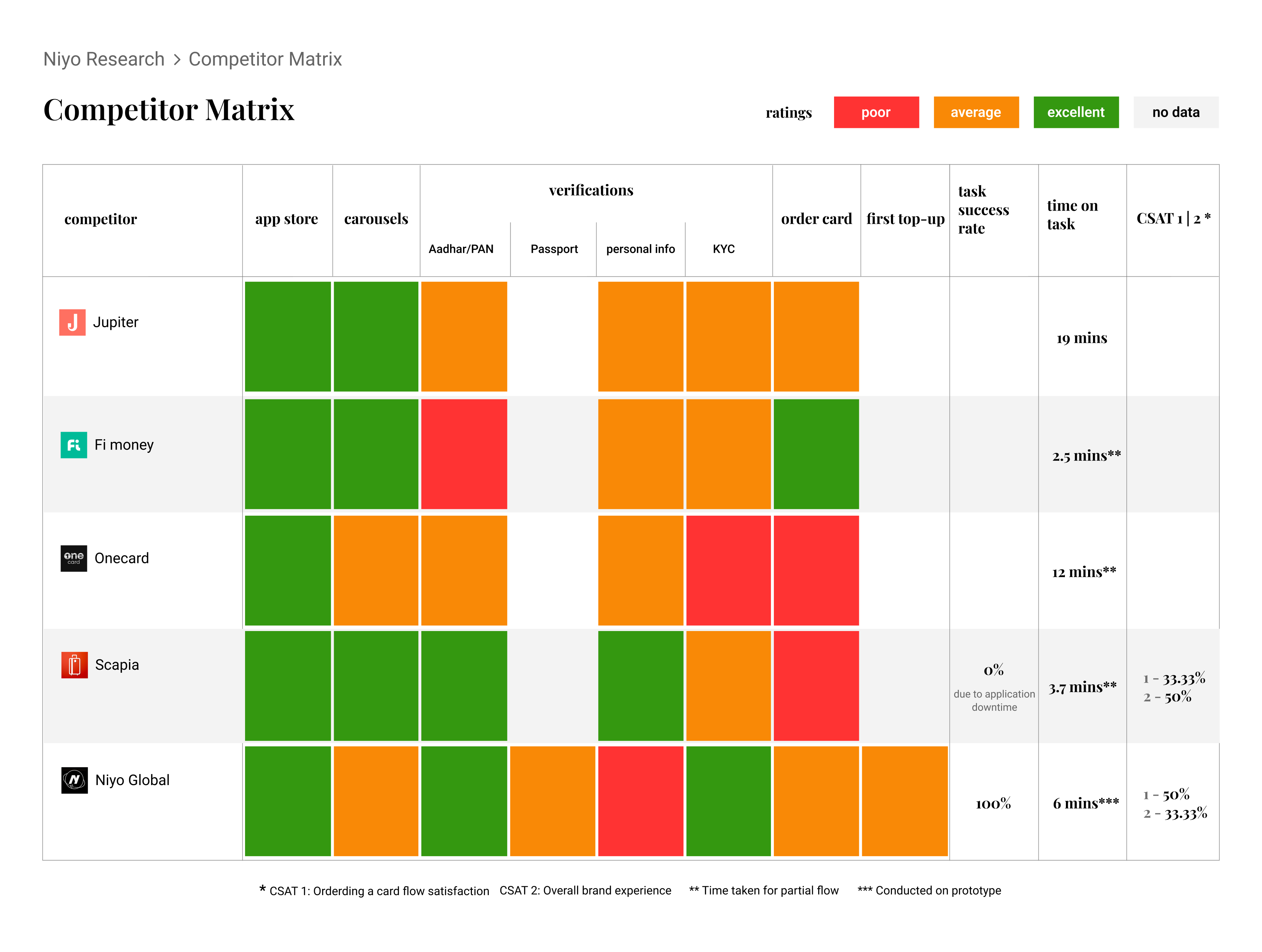 Our mission was to conduct in-depth user research to understand travel and financial decision-making behaviors, identify usability gaps in onboarding and the app experience, and uncover perception issues impacting trust and adoption of Niyo’s travel finance products.