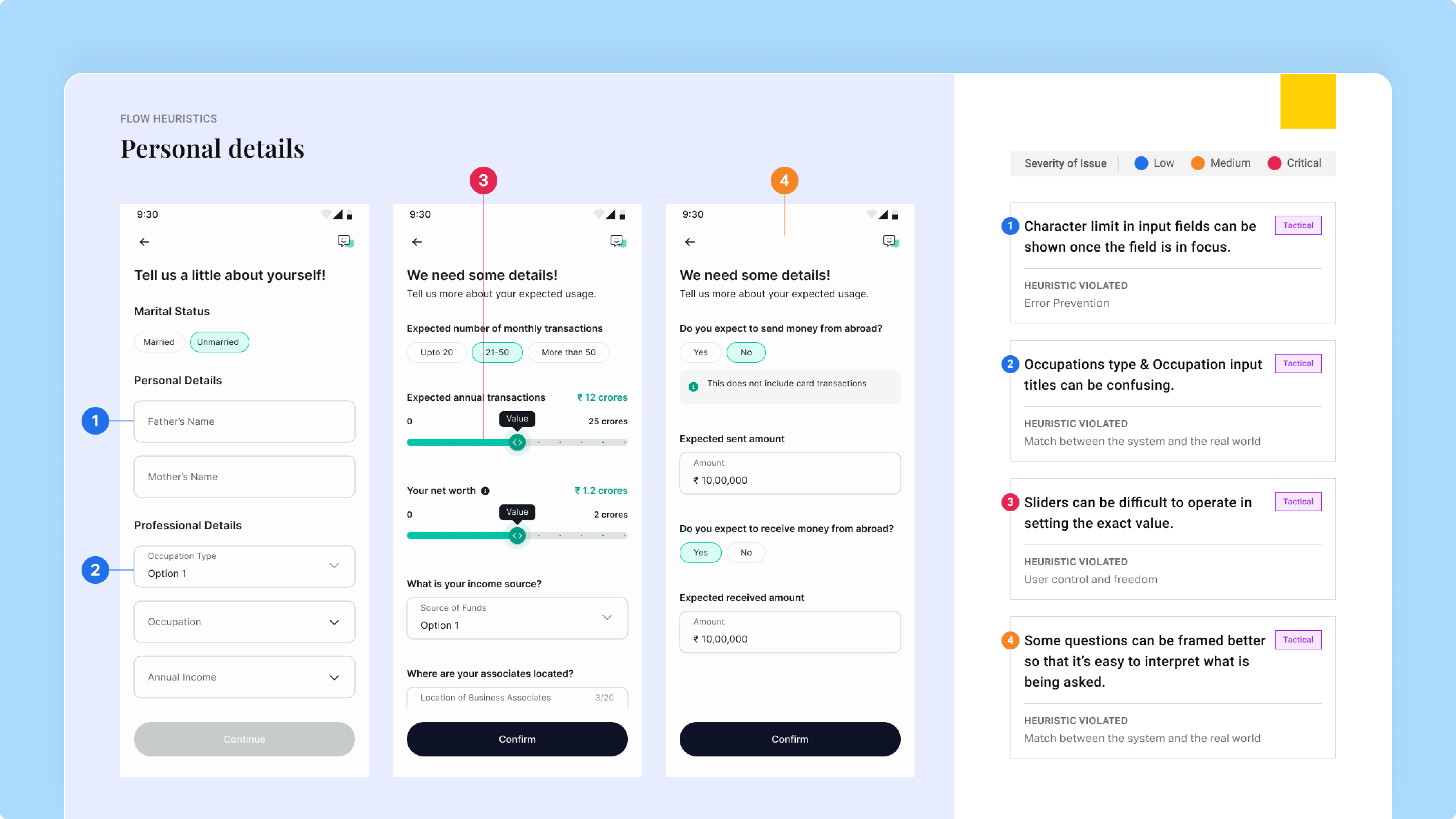 Documentation of tactical usability issues and strategic challenges discovered during interviews, testing, and research analysis.